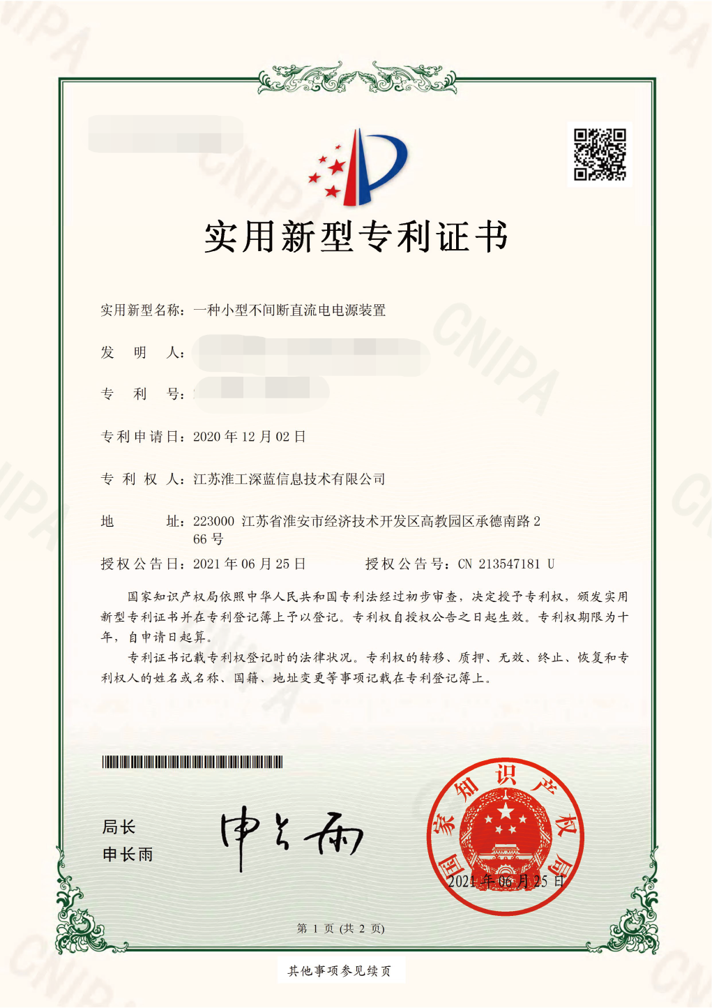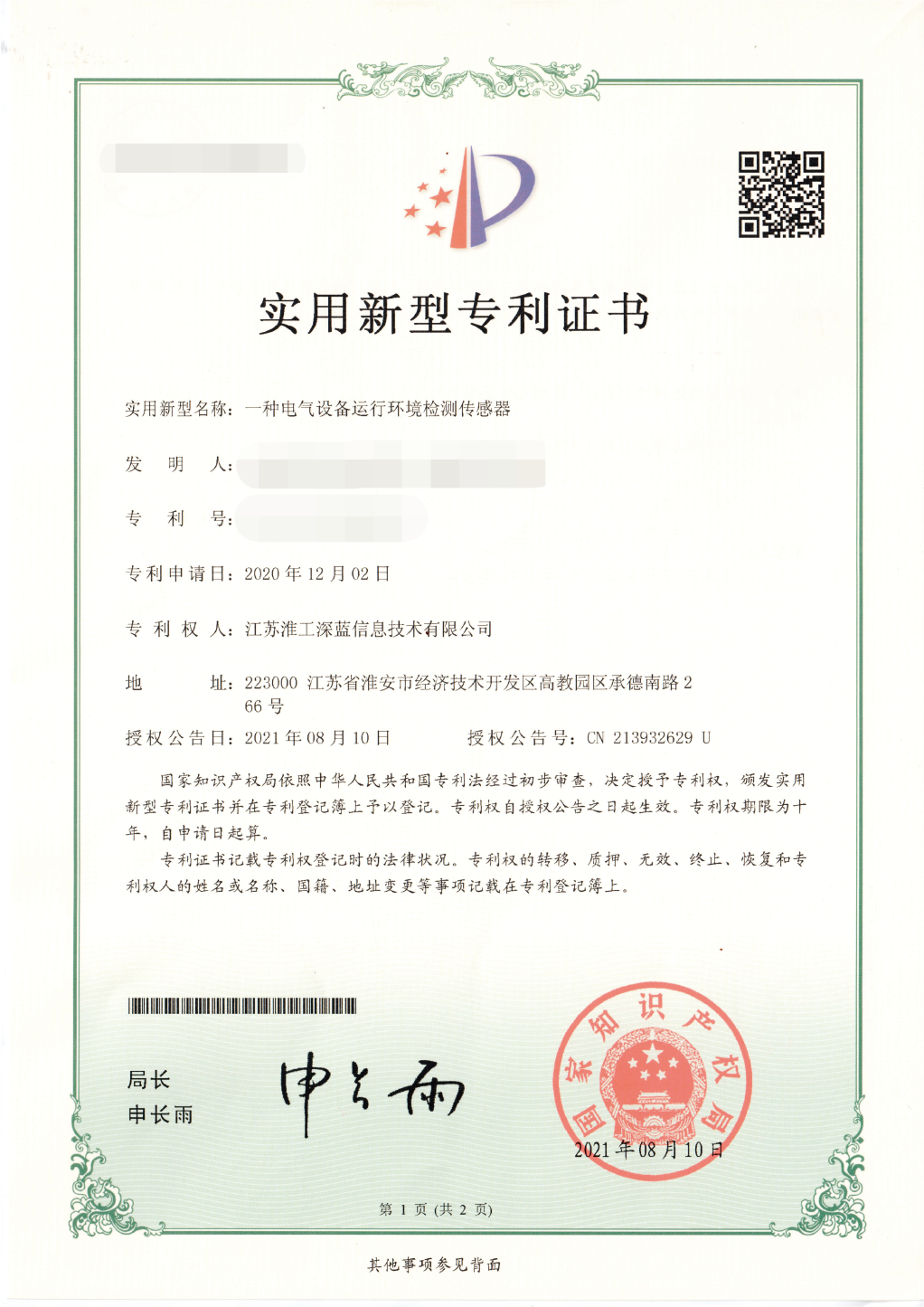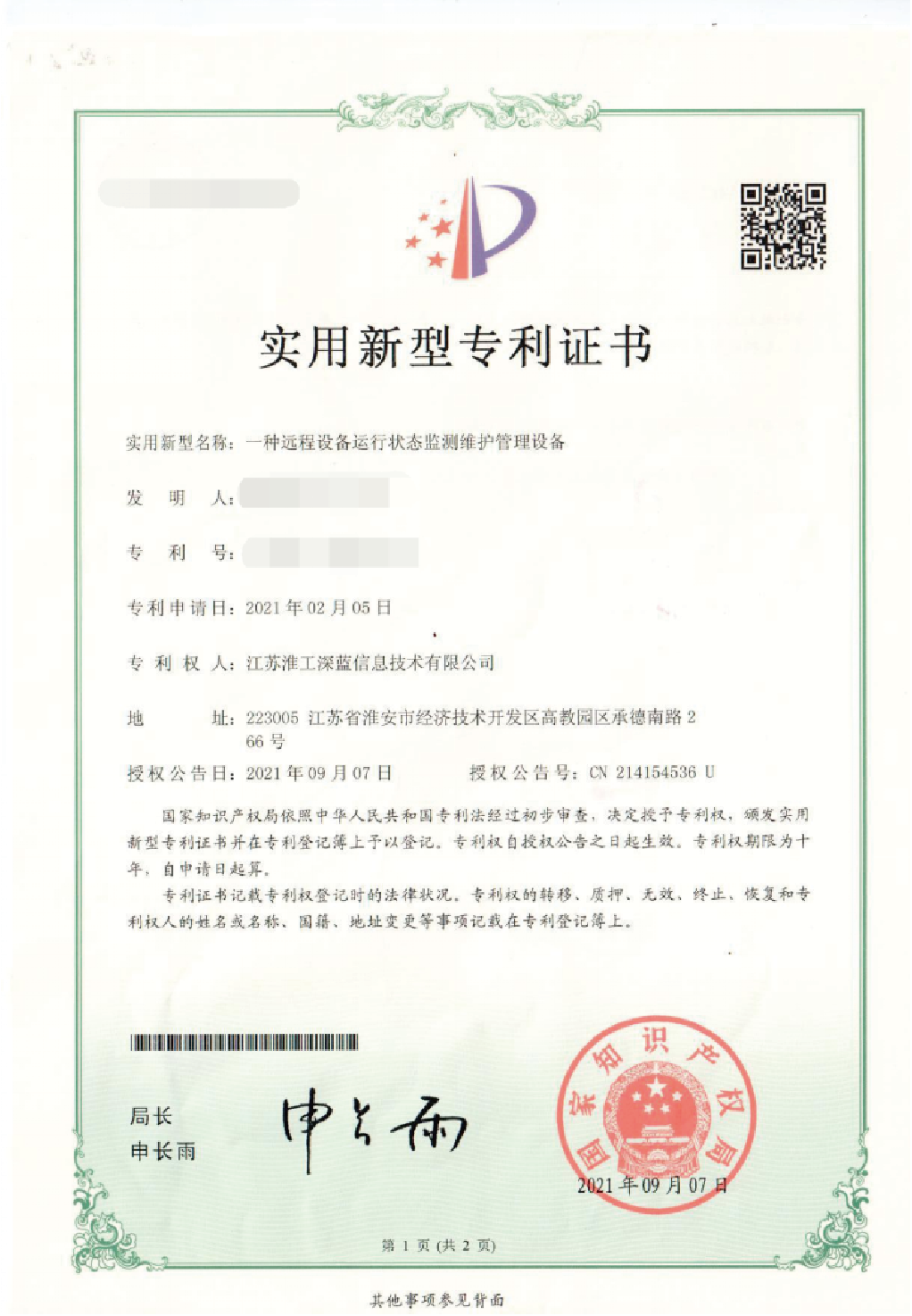 實(shí)用新型專利證書2