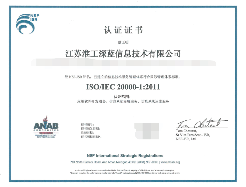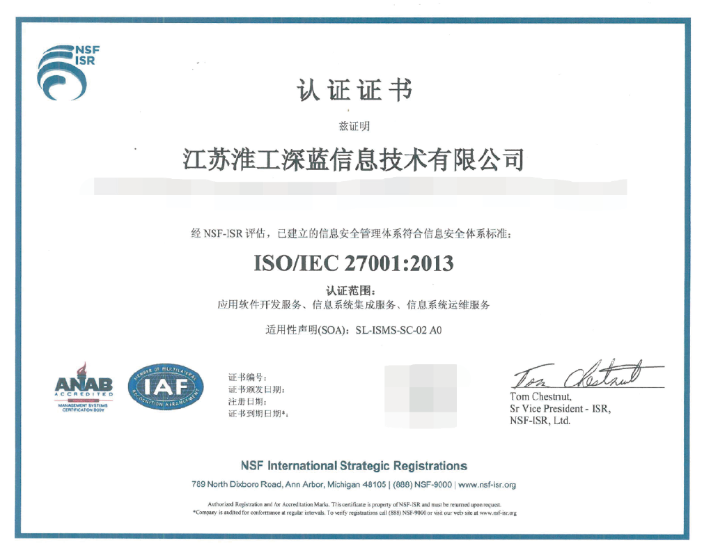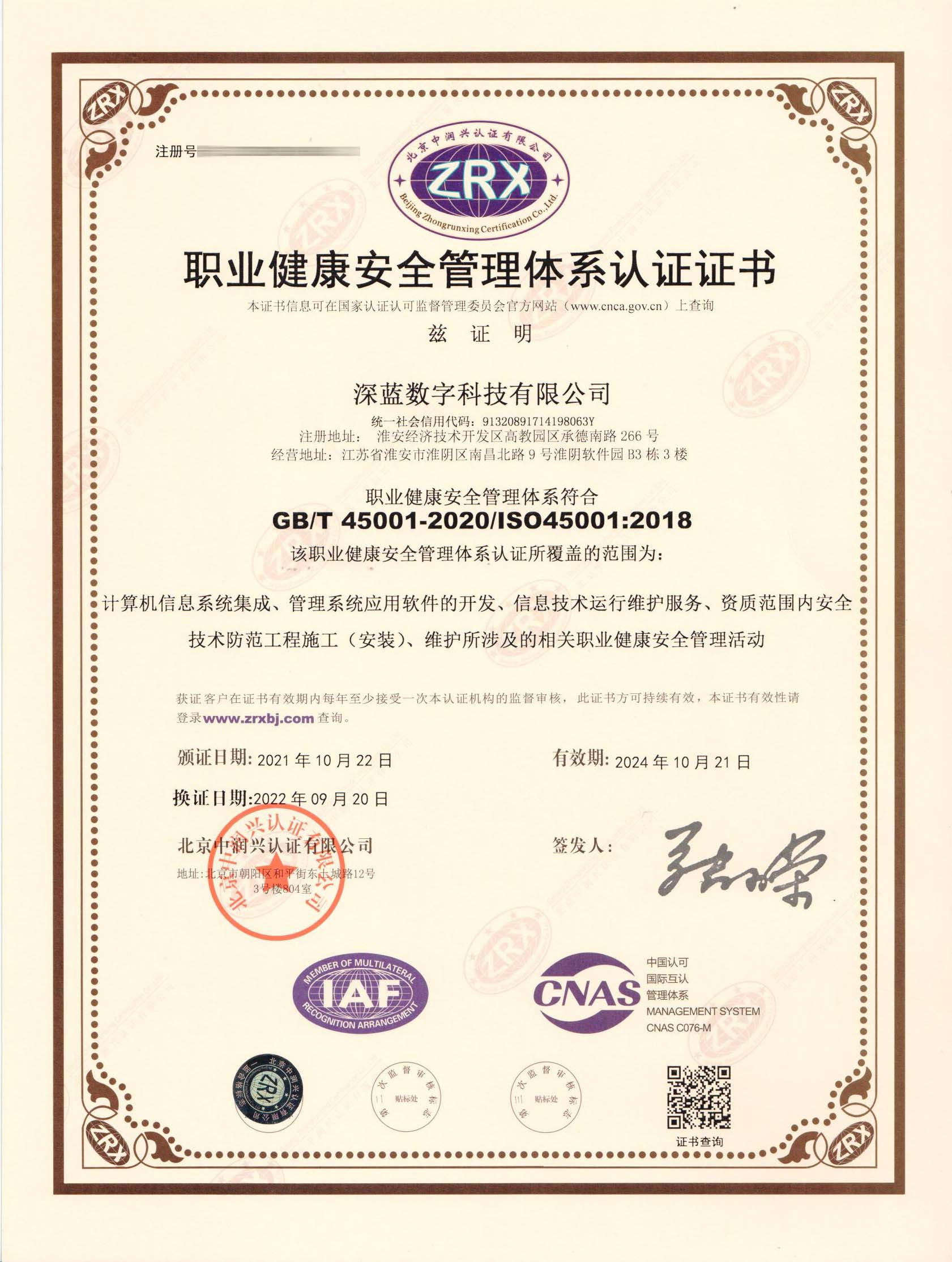 職業(yè)健康安全管理體系認(rèn)證證書