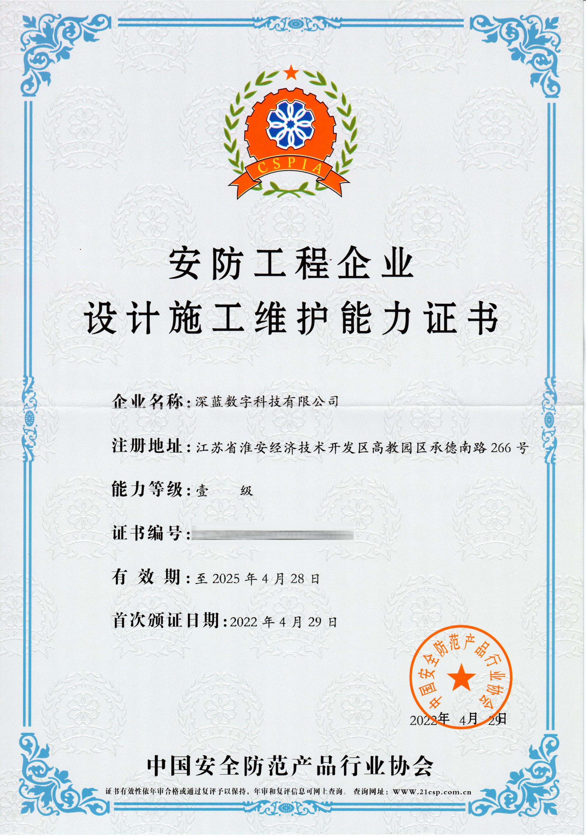 安防工程企業(yè)設(shè)計(jì)施工維護(hù)能力證書