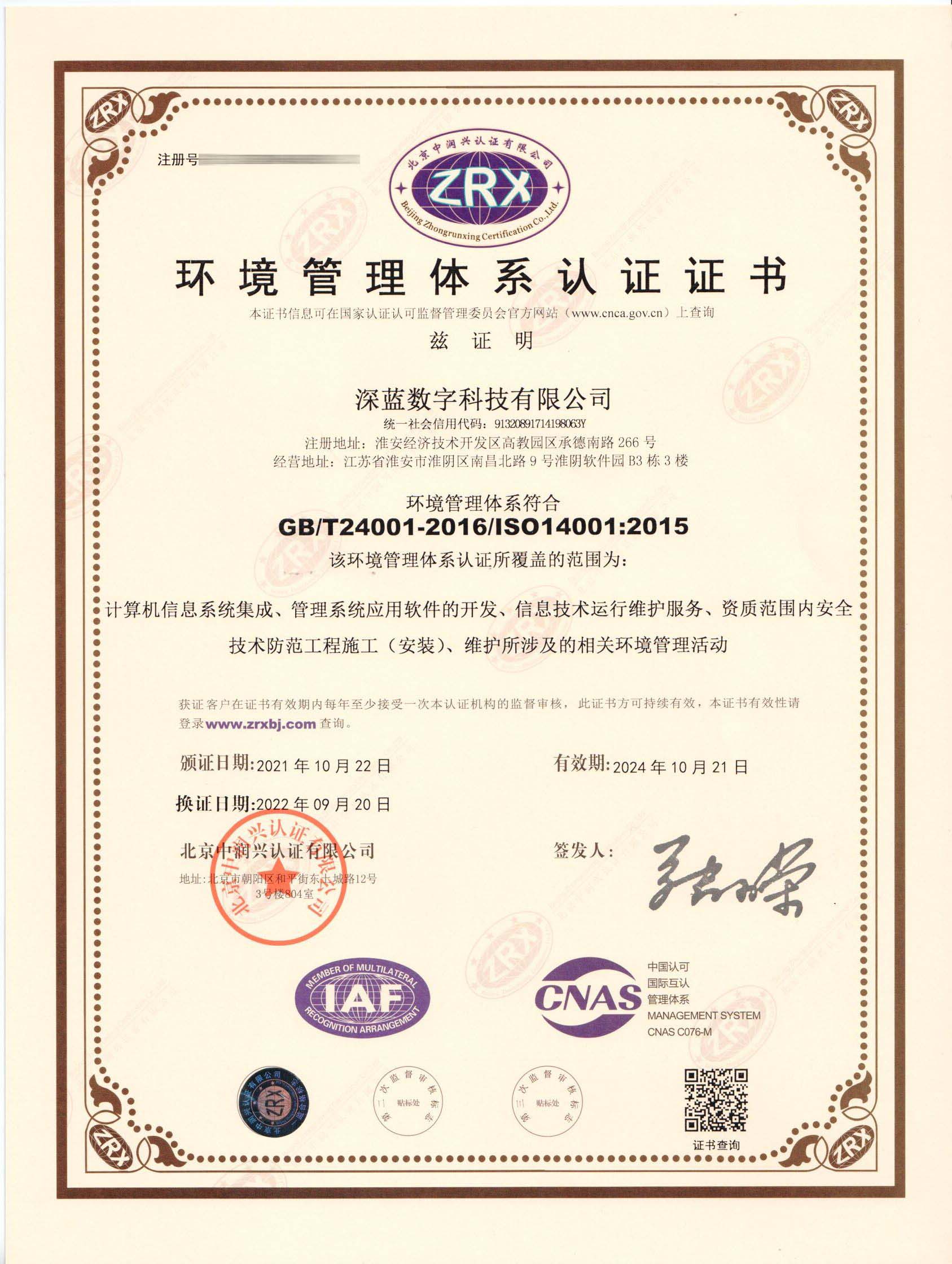 環(huán)境管理體系認(rèn)證證書
