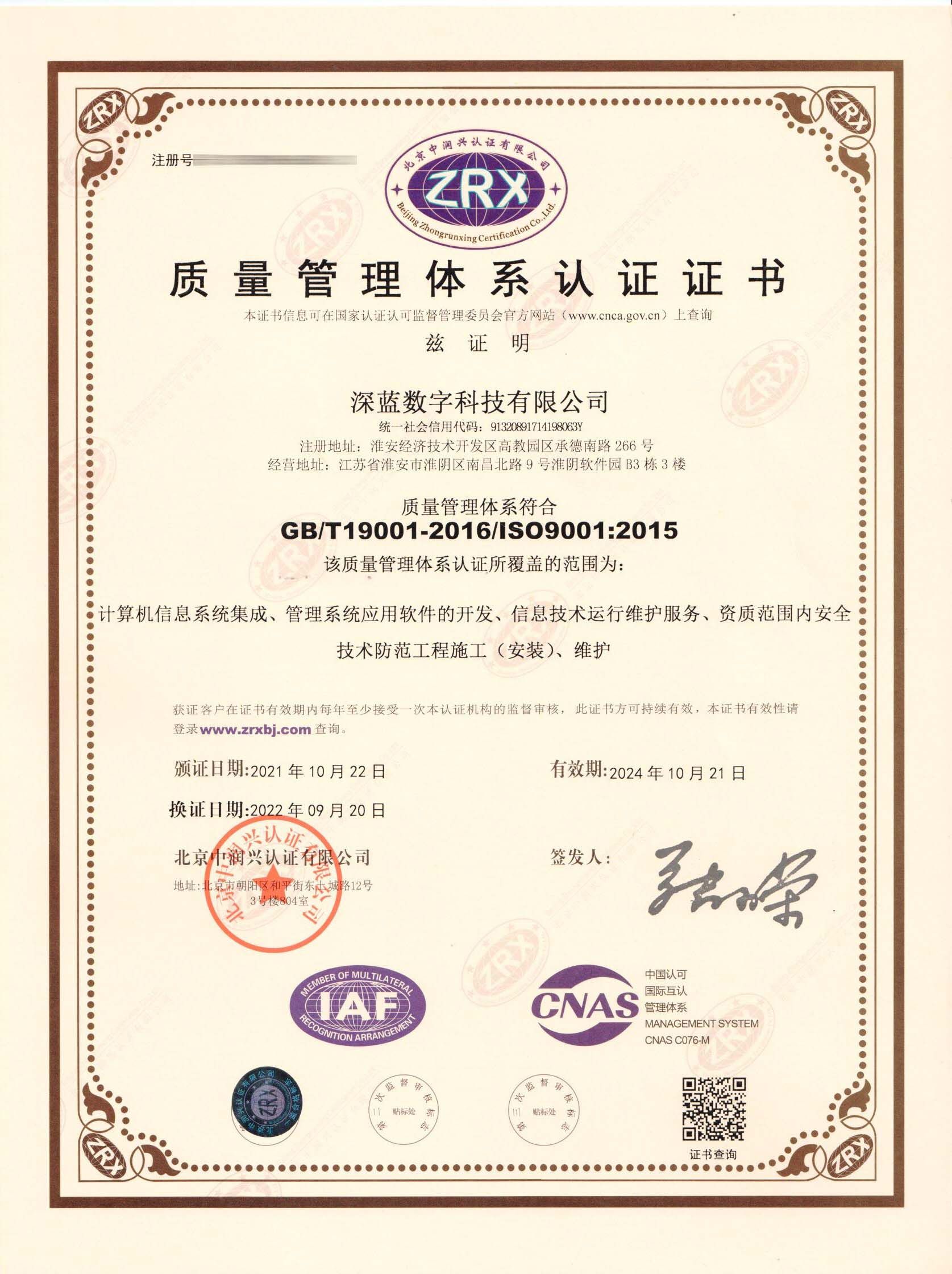 質(zhì)量管理體系認(rèn)證證書